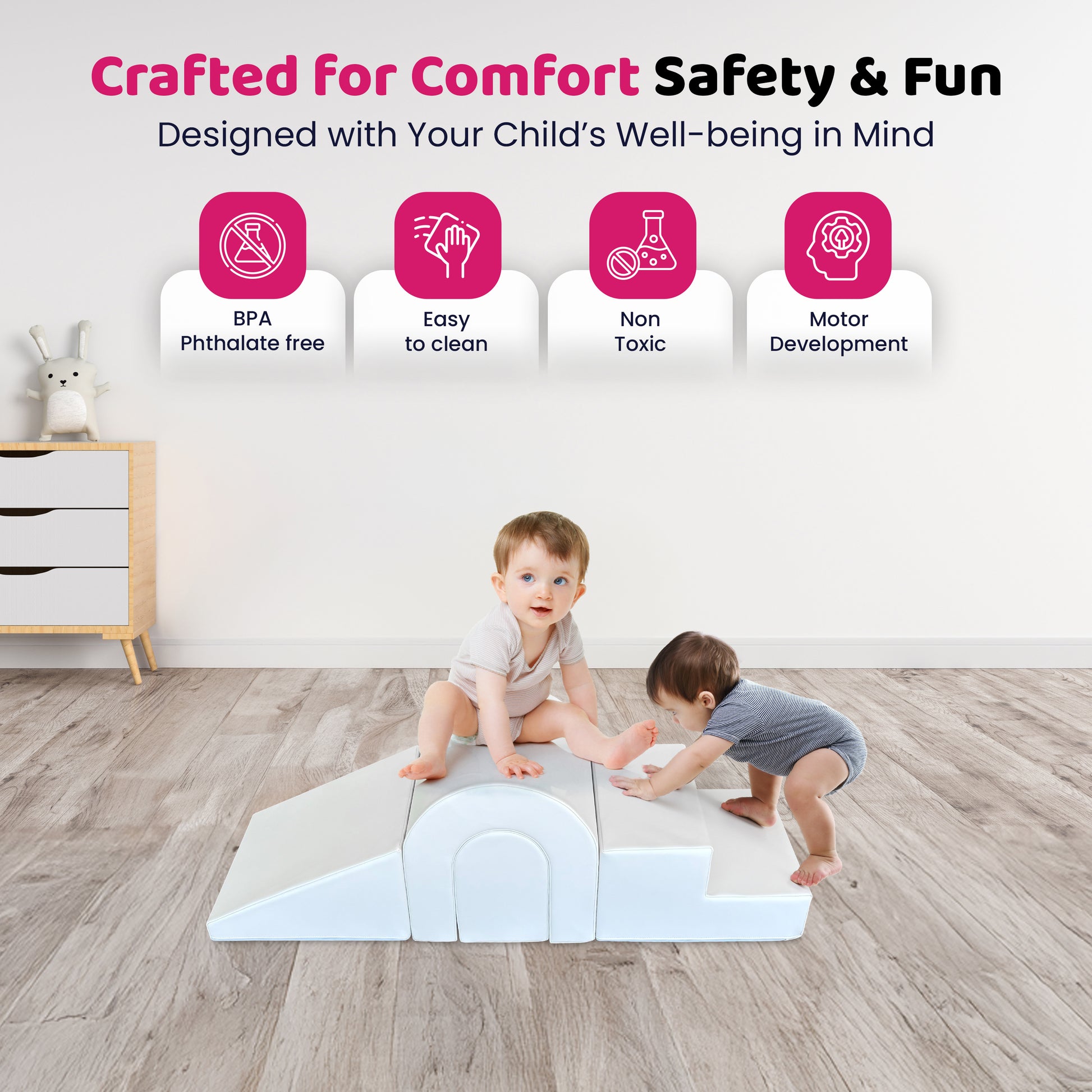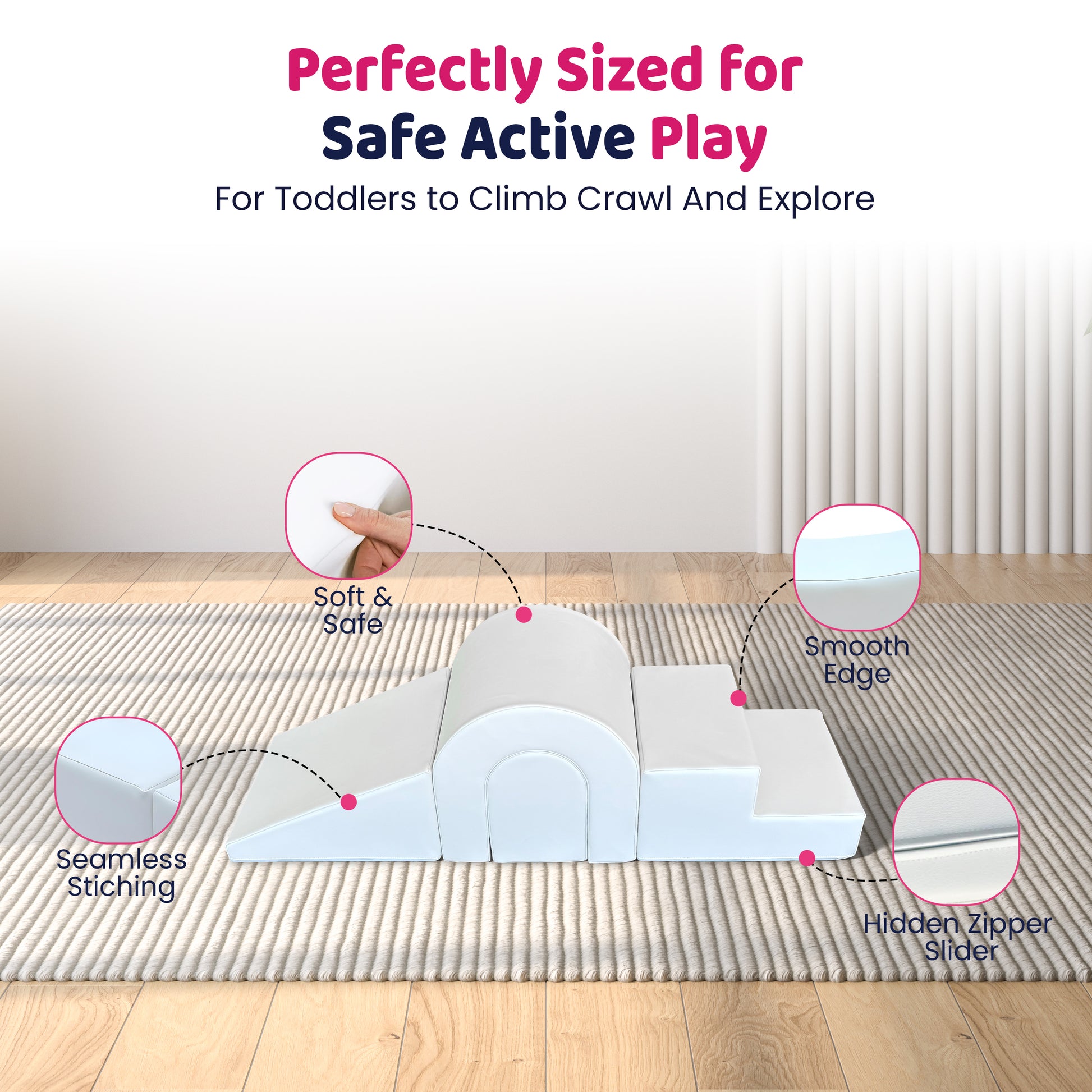 Lightweight and easy to carry, these soft, modular pieces encourage social interaction and collaborative play, making them perfect for nurseries, playrooms, or classrooms. Whether solo or shared, the Amazing Climber Set fosters communication, creativity, and early developmental milestones through safe, imaginative play.